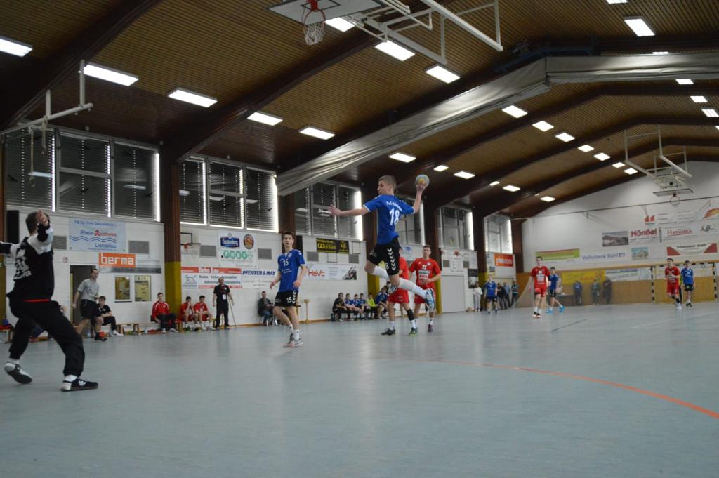 Zu Gast waren der TuS Helmlingen, die TG Biberach und H2KU Herrenberg. Im ersten Spiel traf man im Derby gegen den TuS Helmlingen an. Die Jungs von Trainer Kalman Fenyö begannen sehr konzentriert. Über eine starke Abwehr bekam man immer wieder die Chance, durch Ballgewinne schnelle Tore zu erzielen. So stand es nach 10 Minuten 8:2. Mit 11:6 ging es dann in die Halbzeit. Der Vorsprung konnte in der zweiten Halbzeit gehalten werden, sodass alle Spieler auch zum Einsatz kamen. Am Enden stand ein ungefährdeter Sieg (21:15) auf der Anzeigetafel. Im zweiten Spiel des Tages setzte sich H2KU Herrenberg sicher gegen die TG Biberach durch. Nach diesem Spiel traf unsere Mannschaft ebenfalls auf die TG Biberach. Auch in diesem Spiel startete man konzentriert und führte nach 5 Minuten mit 4:0. Bis zur Halbzeit konnte der Vorsprung auf 11:6 ausgebaut werden. Auch in diesem Spiel konnte durchgewechselt werden, ohne dass der Sieg in Gefahr geriet. Mit dem zweiten Sieg (21:14) war klar, dass es gegen die H2Ku Herrenberg zu einem Endspiel kommt, da sie ihr Spiel gegen den TuS Helmlingen mit 17:10 gewinnen konnte. Bevor es jedoch zum „Endspiel“ kam, trafen der TuS Helmlingen und die TG Biberach aufeinander. Trotz eines 1:5 Rückstands konnten der TuS das Spiel noch für sich entscheiden und sicherte sich den dritten Platz. Im letzten Spiel des Tages ging es um die direkte Qualifikation für die Baden-Württemberg Oberliga. In der ersten Halbzeit wechselte die Führung ständig. Im Angriff taten sich die SG-JHA-Jungs gegen die aggressive Abwehr schwer und so konnte man in den ersten 15 Minuten lediglich sechs Tore erzielen. Aber auch Herrenberg gelang keine einfachen Treffer, da Jan Gjerkes im Tor der SG JHA Baden immer wieder 100 %-ige Torchancen entschärfen konnte und so dafür sorgte, dass man mit einem Tor Vorsprung in die Halbzeit ging. In der zweiten Halbzeit fand man im Angriff besser ins Spiel. So konnte man sich nach 8 Minuten erstmals mit 3 Toren absetzen. Gestützt auf eine gute Abwehr und eine sehr starke Torwartleistung feierte man letztlich einen 15:11 Sieg. Über den Turnierverlauf zeigte sich immer wieder, dass alle Spieler Verantwortung übernommen haben und die Mannschaft so schwer auszurechnen war. Zur Belohnung spielt damit auch die A-Jugend in der nächsten Saison in der BWOL.